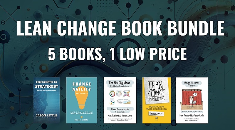 BundleGet PDF versions of Lean Change Management, Change Agility, From Skeptic to Strategist, The Six Big Ideas of Adaptive Organizations and Beyond Change Theater in one bundle! Saves you 50% when you buy the bundle versus individual books!